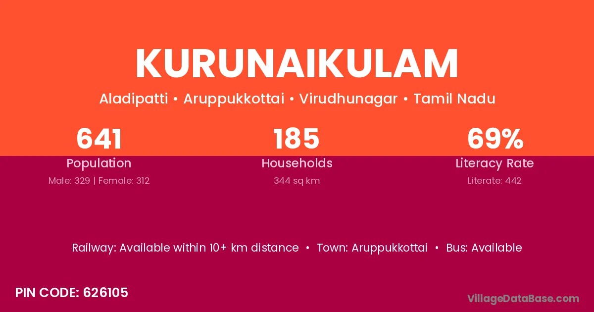 Aruppukkottai is the nearest town to Kurunaikulam village for major economic activities