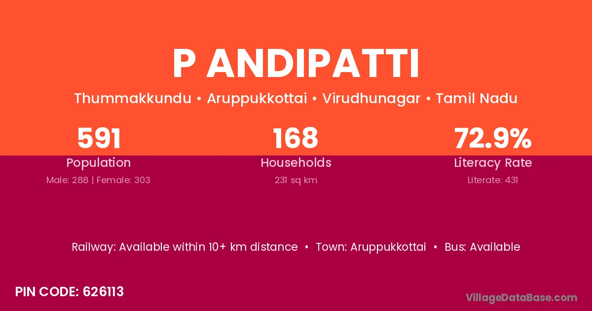 According to Census 2011 information, the village code of P Andipatti village is 626113.