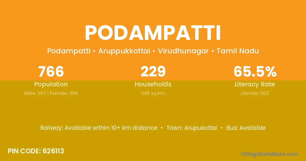 Arupukottai is the nearest town to Podampatti village for major economic activities