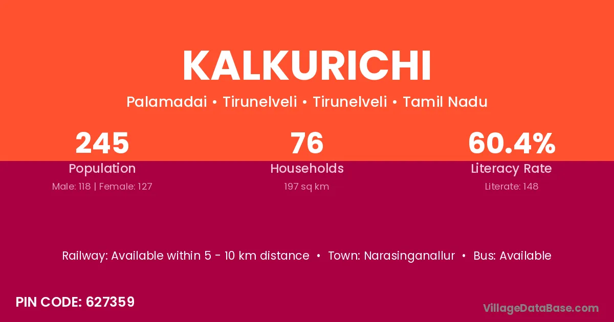 According to Census 2011 information, the village code of Kalkurichi village is 626104.