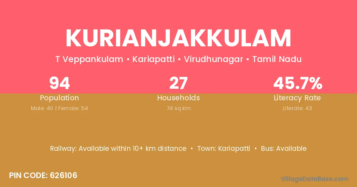 Kariapatti is the nearest town to Kurianjakkulam village for major economic activities