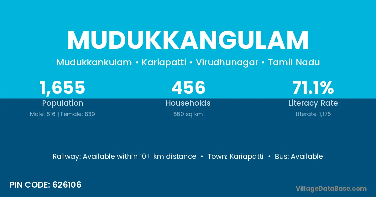 There are approximately 456 households in Mudukkangulam village.