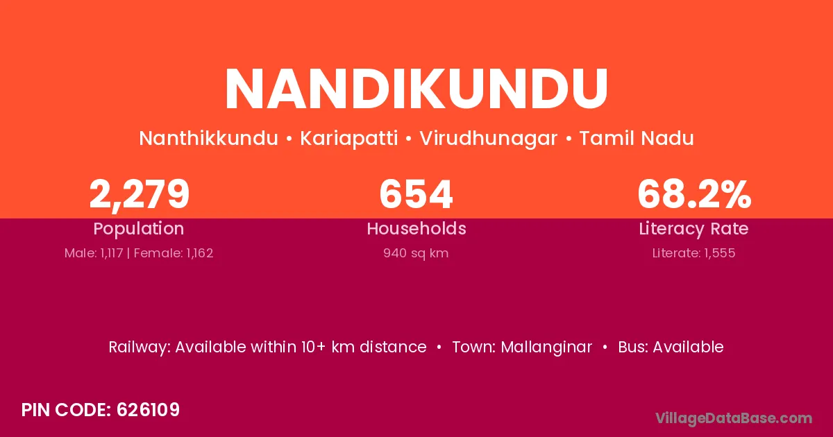According to Census 2011 information, the village code of Nandikundu village is 626109.