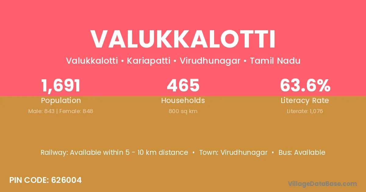 Virudhunagar is the nearest town to Valukkalotti village for major economic activities
