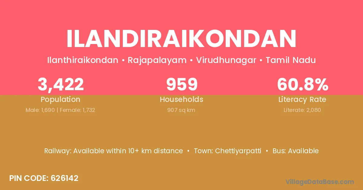 According to Census 2011 information, the village code of Ilandiraikondan village is 626142.