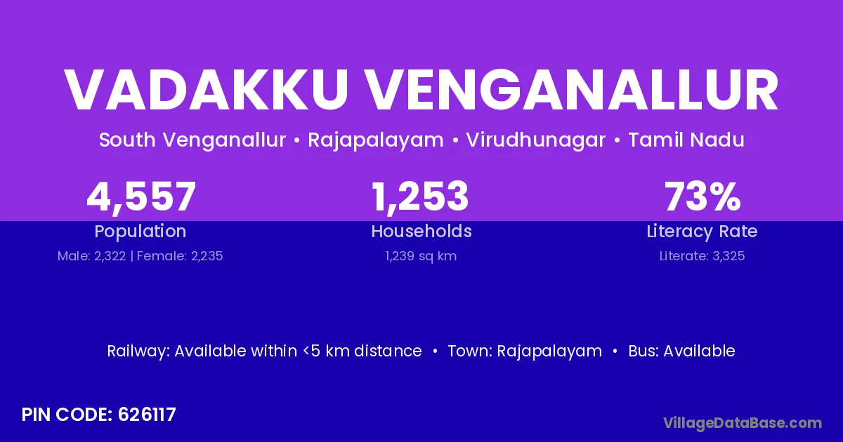 Rajapalayam is the nearest town to Vadakku Venganallur village for major economic activities
