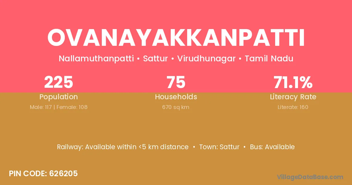 Ovanayakkanpatti village has a total population of 225 people, of which 117 are males and 108 are females.