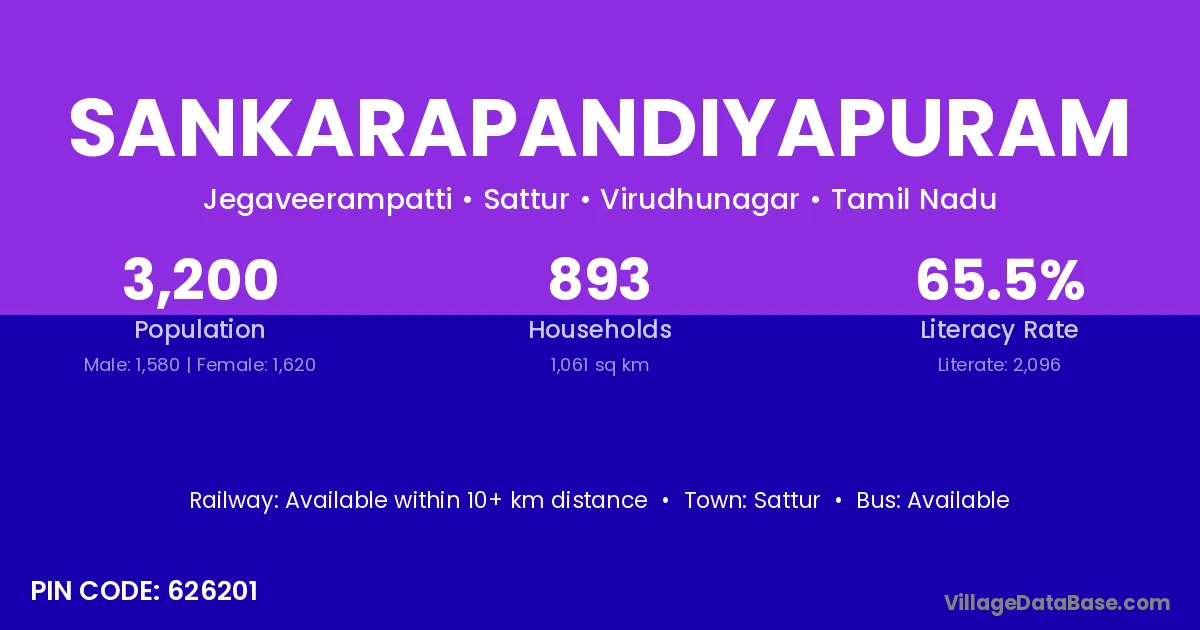 Sattur is the nearest town to Sankarapandiyapuram village for major economic activities