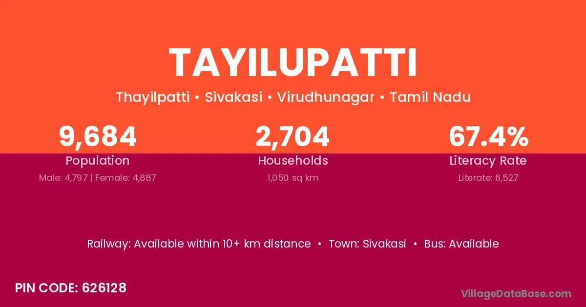 Sivakasi is the nearest town to Tayilupatti village for major economic activities