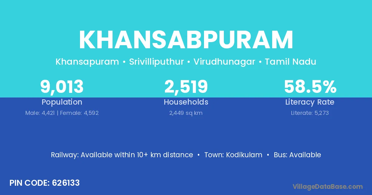 Kodikulam is the nearest town to Khansabpuram village for major economic activities