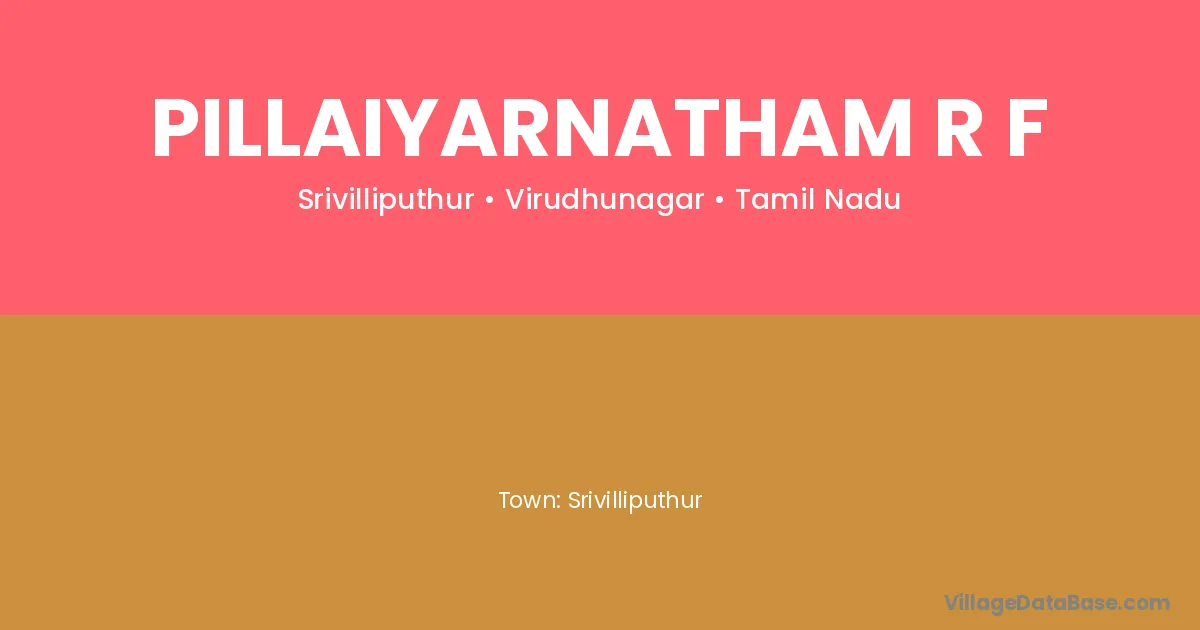 Pillaiyarnatham R F village is located in the Srivilliputhur Taluka of the Virudhunagar district in Tamil Nadu .