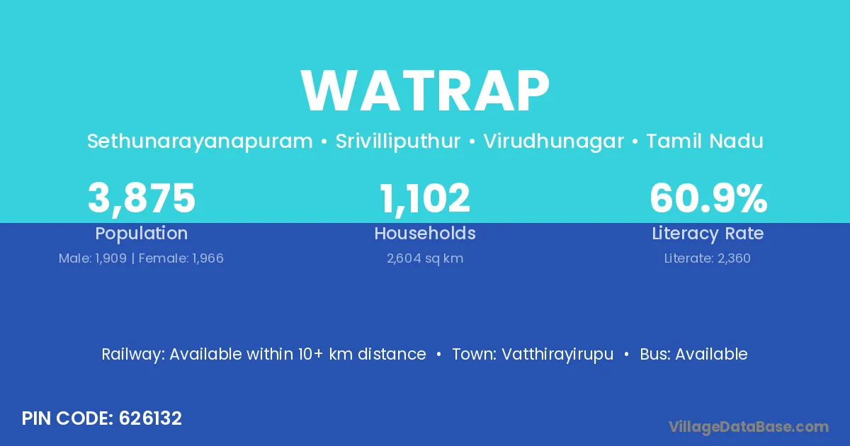 Vatthirayirupu is the nearest town to Watrap village for major economic activities
