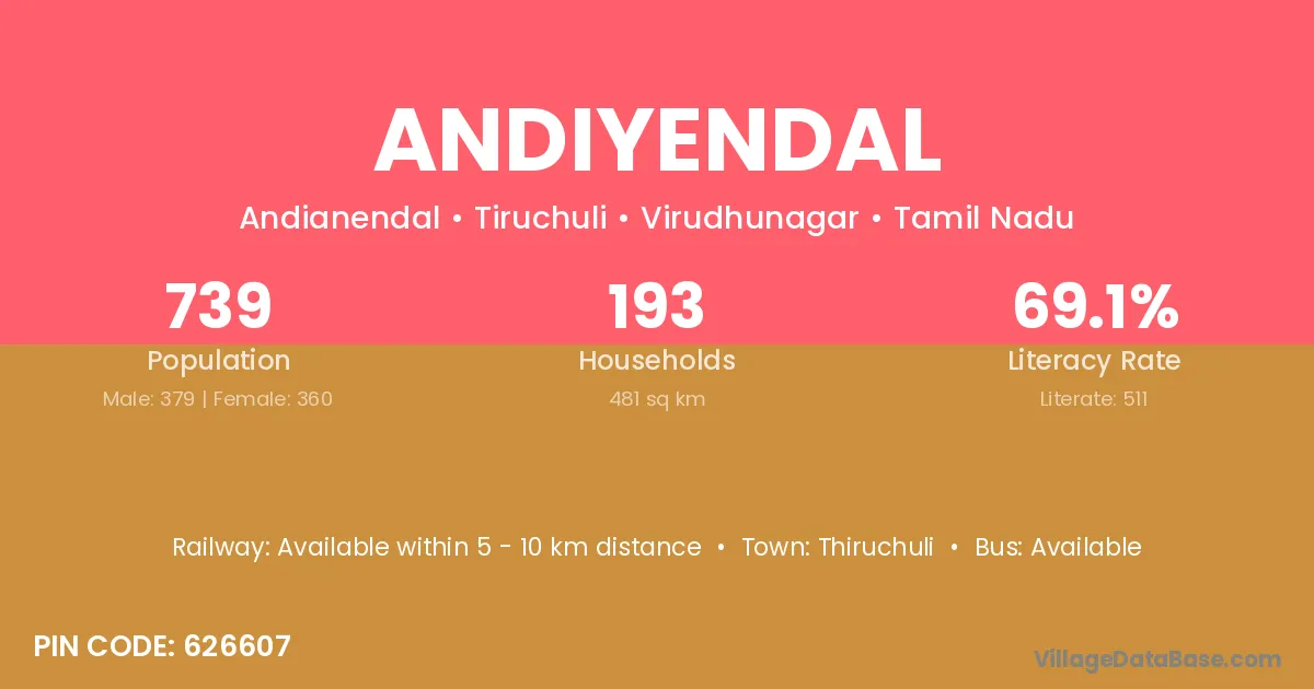 Thiruchuli is the nearest town to Andiyendal village for major economic activities