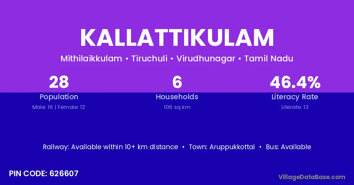 Aruppukkottai is the nearest town to Kallattikulam village for major economic activities
