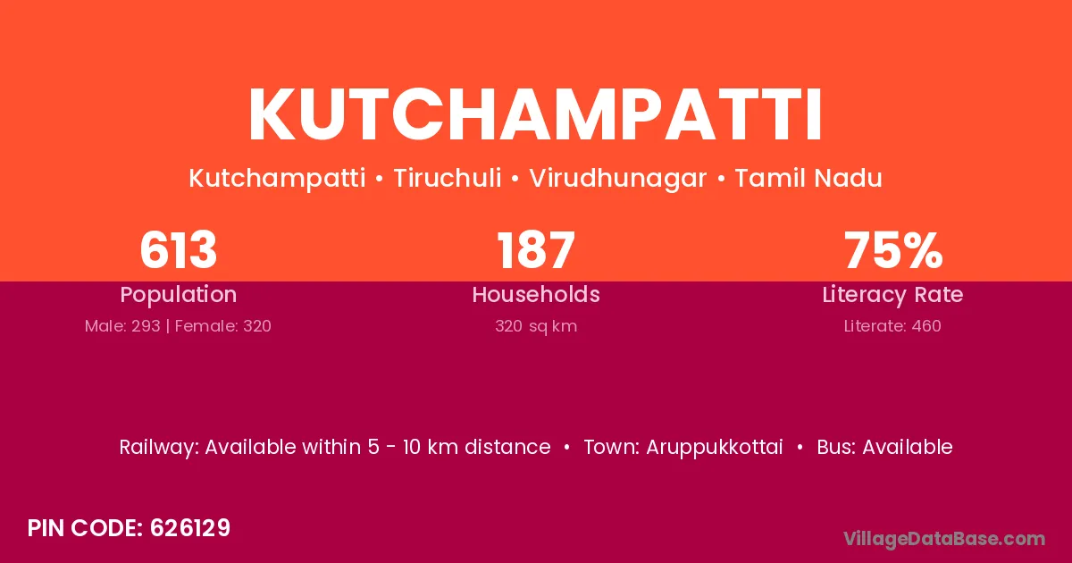 Kutchampatti village has a total population of 613 people, of which 293 are males and 320 are females.
