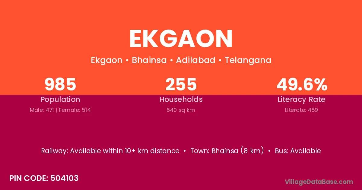 According to Census 2011 information, the village code of Ekgaon village is 504103.