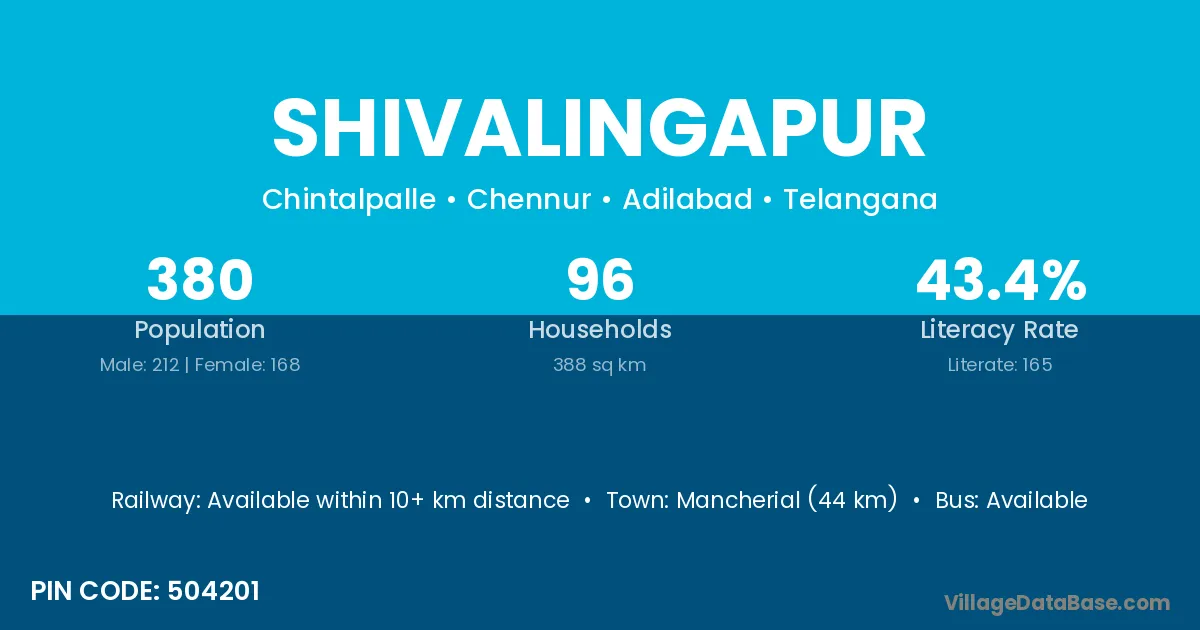 Mancherial (44 km) is the nearest town to Shivalingapur village for major economic activities and is located approximately 44 km away.