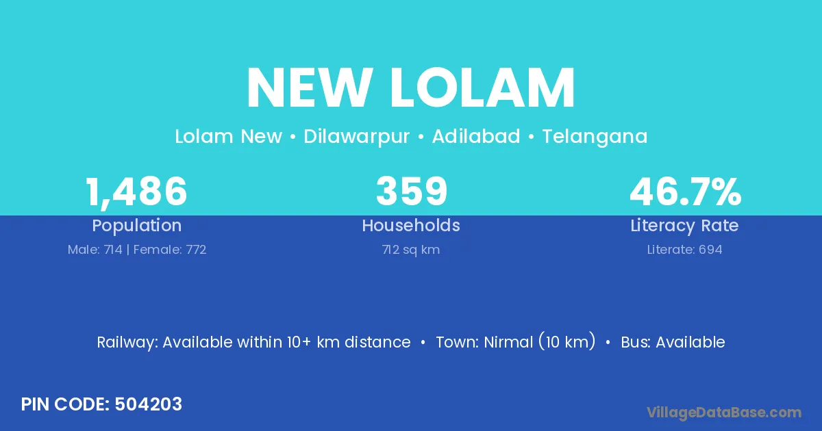 Nirmal (10 km) is the nearest town to New Lolam village for major economic activities and is located approximately 10 km away.
