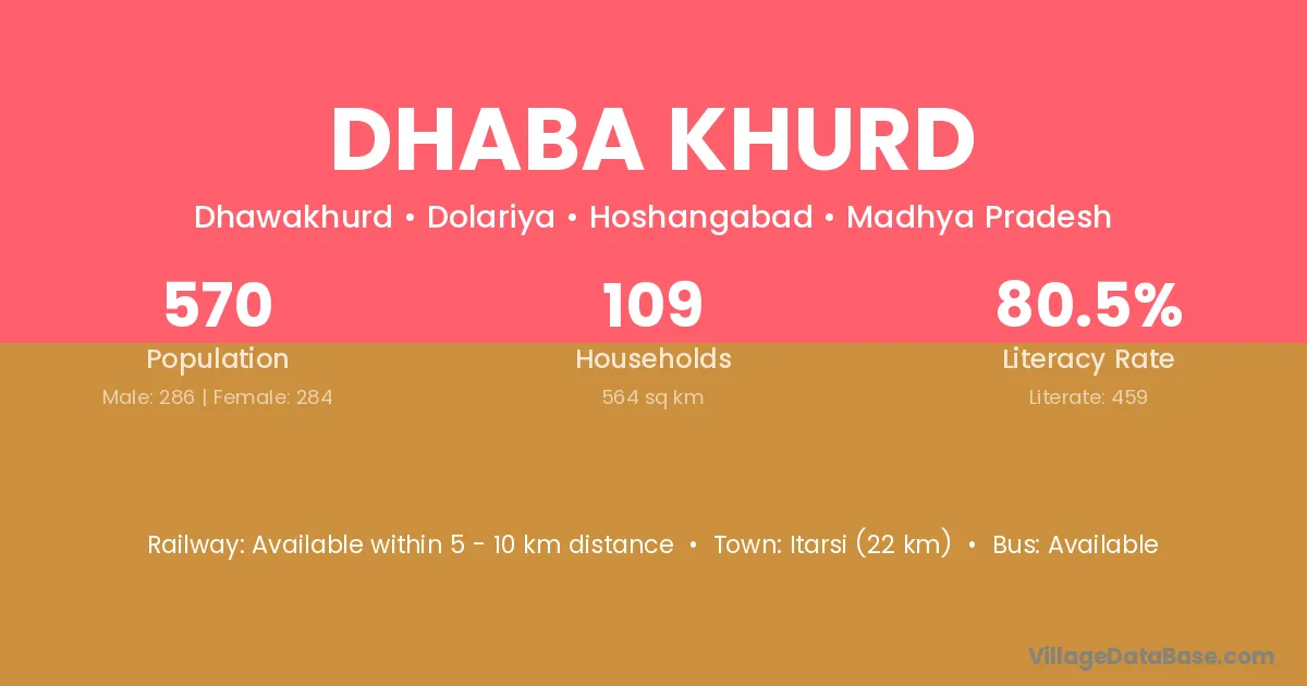 According to Census 2011 information, the village code of Dhaba Khurd village is 504307.