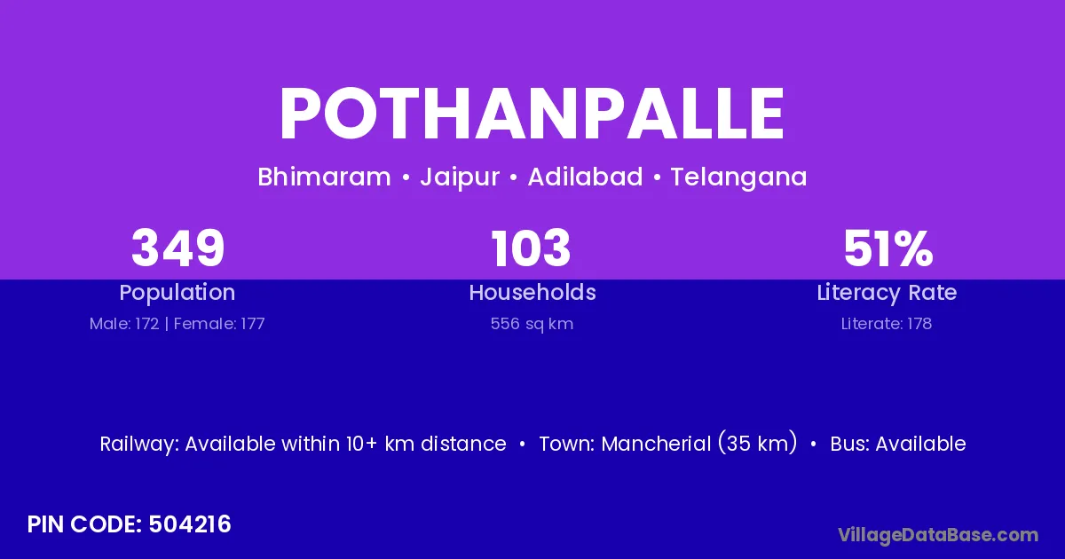 According to Census 2011 information, the village code of Pothanpalle village is 504216.