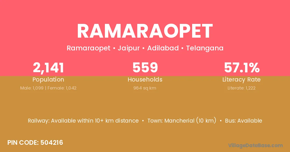 According to Census 2011 information, the village code of Ramaraopet village is 504216.