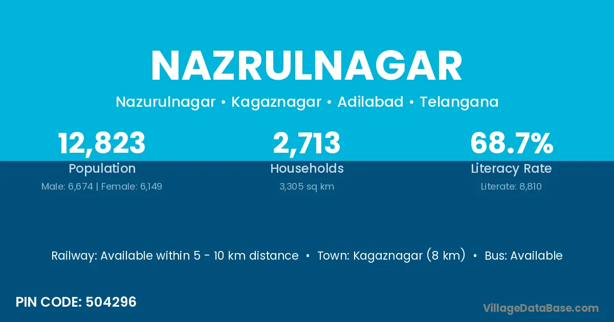 Nazrulnagar village is located in the Kagaznagar Mandal of the Adilabad district in Telangana .