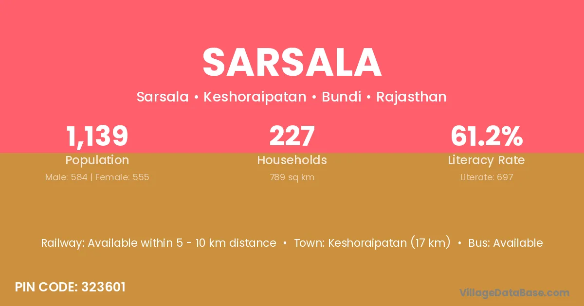 According to Census 2011 information, the village code of Sarsala village is 504296.