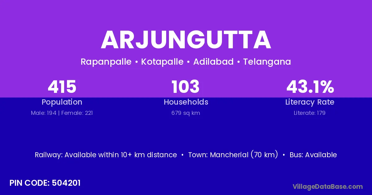 Arjungutta village has a total population of 415 people, of which 194 are males and 221 are females.