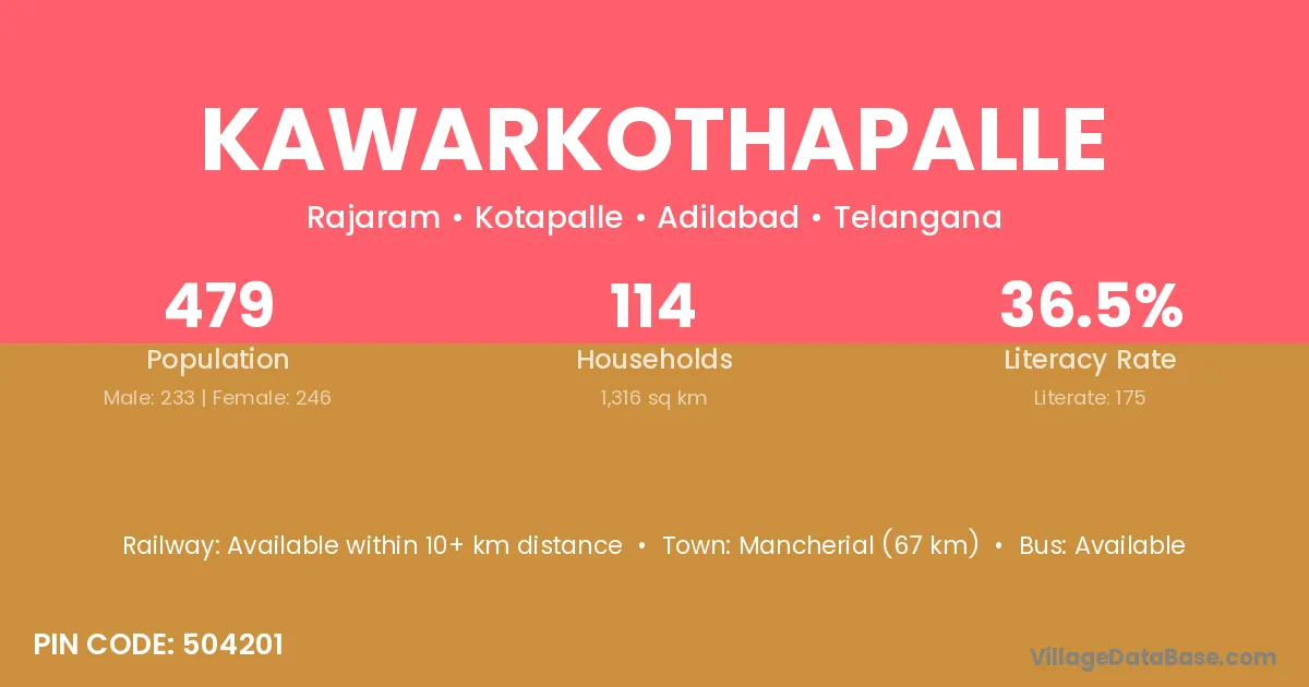 Kawarkothapalle village has a total population of 479 people, of which 233 are males and 246 are females.