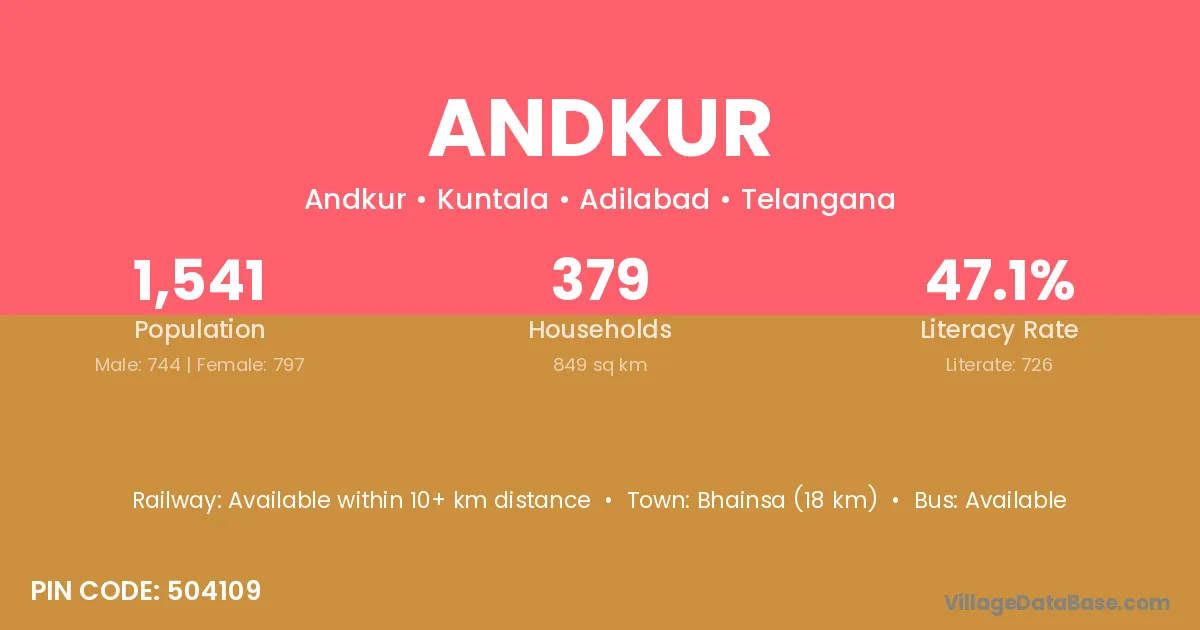 Bhainsa (18 km) is the nearest town to Andkur village for major economic activities and is located approximately 18 km away.