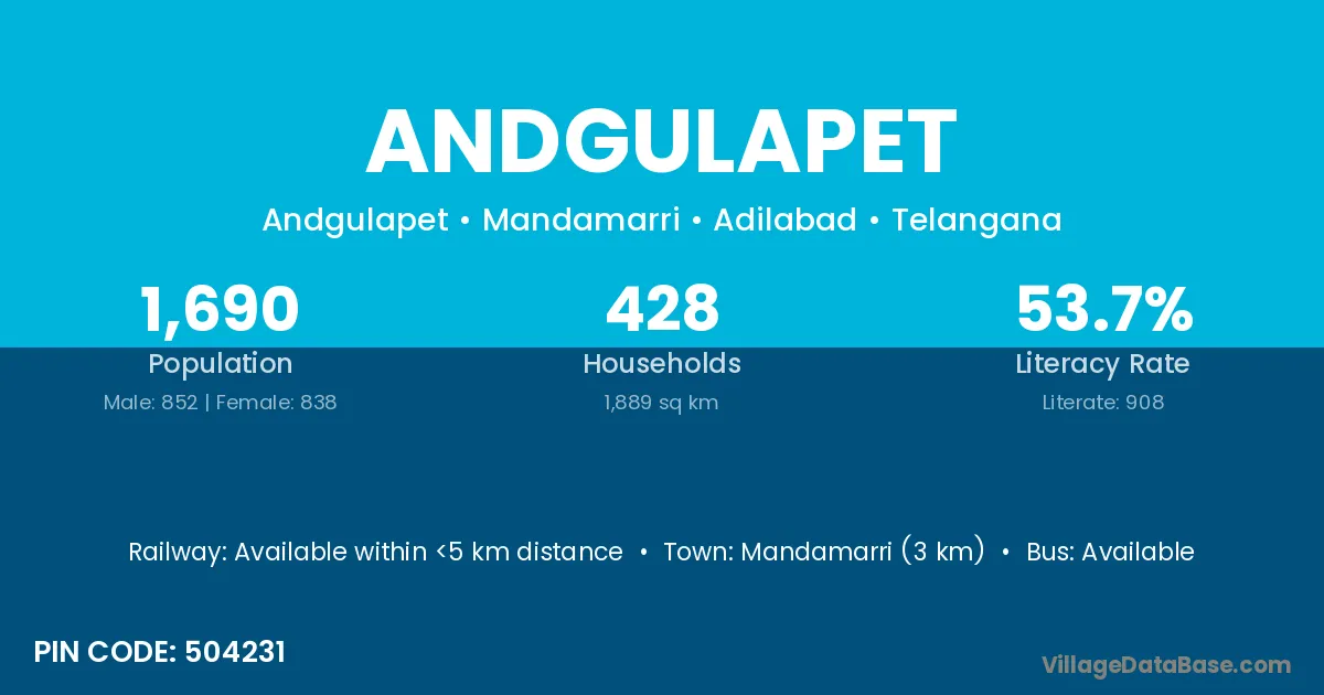 Mandamarri (3 km) is the nearest town to Andgulapet village for major economic activities and is located approximately 3 km away.