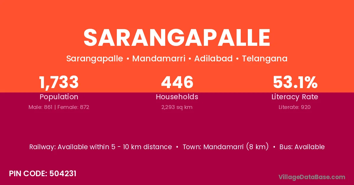 According to Census 2011 information, the village code of Sarangapalle village is 504231.