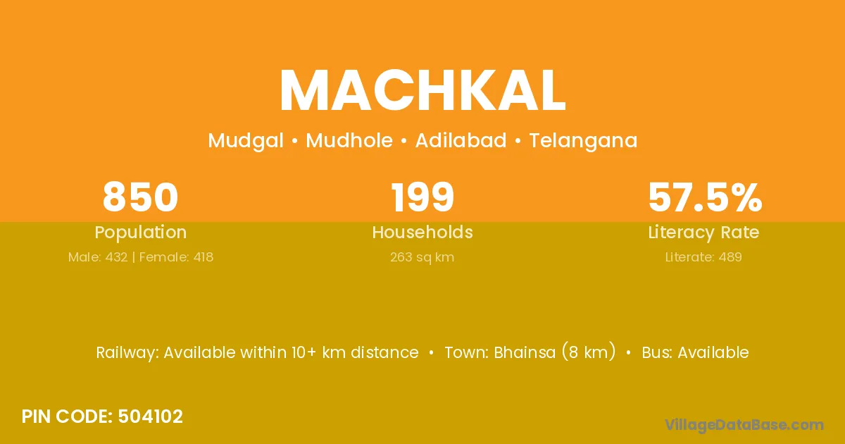 Bhainsa (8 km) is the nearest town to Machkal village for major economic activities and is located approximately 8 km away.