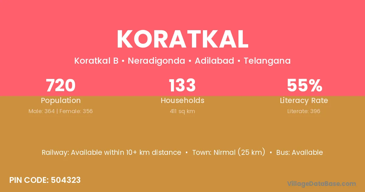 Nirmal (25 km) is the nearest town to Koratkal village for major economic activities and is located approximately 25 km away.
