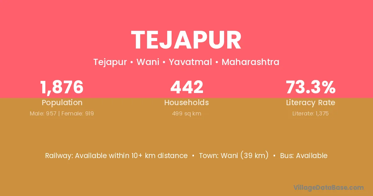 Nirmal (40 km) is the nearest town to Tejapur village for major economic activities and is located approximately 40 km away.