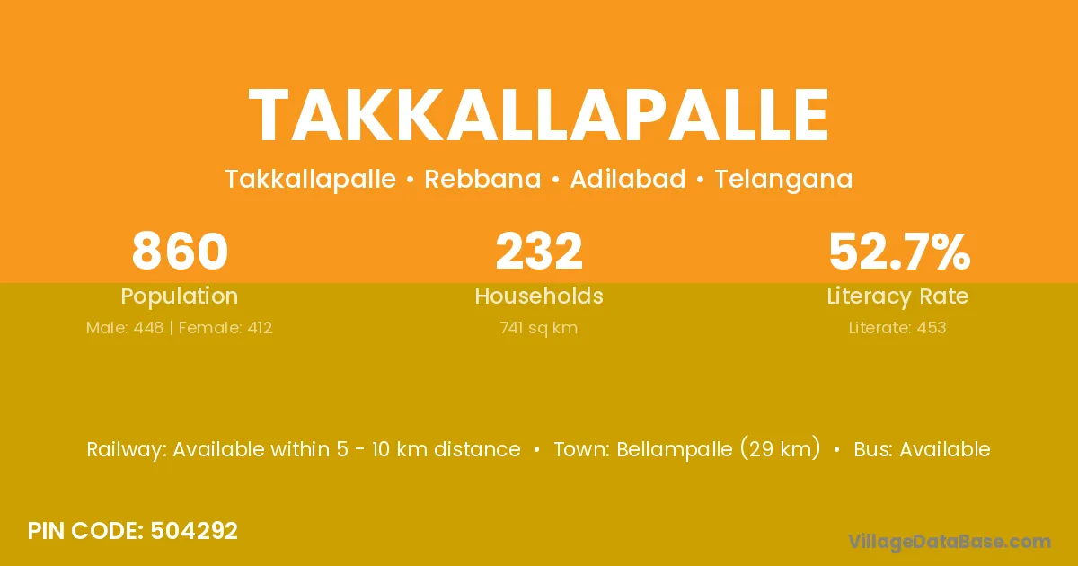 Takkallapalle village is located in the Rebbana Mandal of the Adilabad district in Telangana .