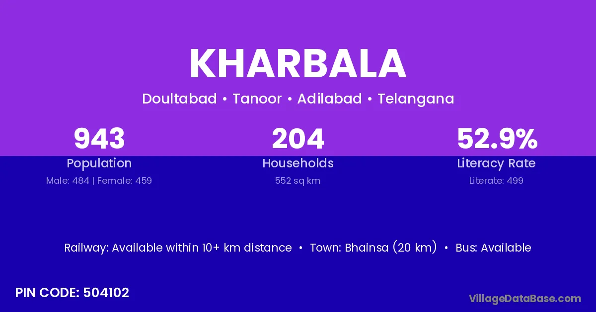 Bhainsa (20 km) is the nearest town to Kharbala village for major economic activities and is located approximately 20 km away.