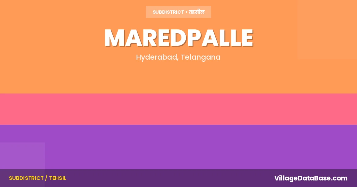 Maredpalle is a town and Mandal in the Hyderabad district of the Telangana. In India, a Mandal is a subdivision of a district responsible for the administration and revenue collection of a specific area within the district. Mandals play a crucial role in the local governance structure, contributing significantly to the development and administration of their communities.
