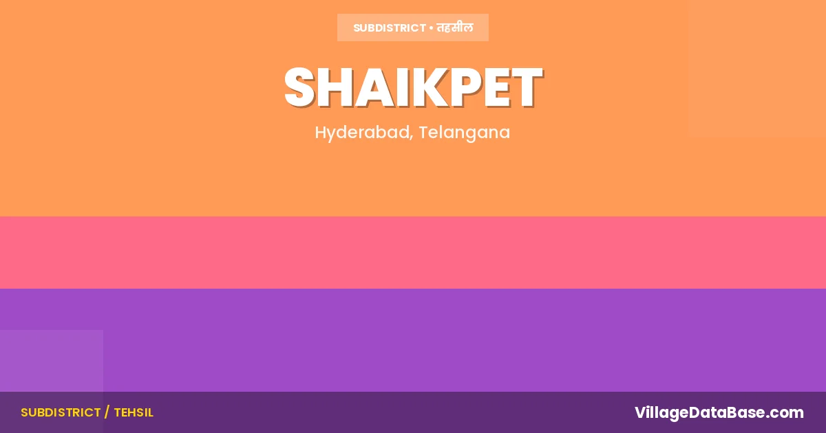 Shaikpet is a town and Mandal in the Hyderabad district of the Telangana. In India, a Mandal is a subdivision of a district responsible for the administration and revenue collection of a specific area within the district. Mandals play a crucial role in the local governance structure, contributing significantly to the development and administration of their communities.