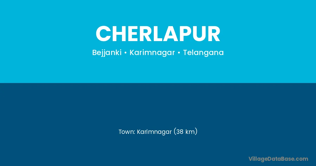 Karimnagar (38 km) is the nearest town to Cherlapur village for major economic activities and is located approximately 38 km away.