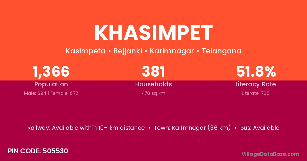 According to Census 2011 information, the village code of Khasimpet village is 505530.
