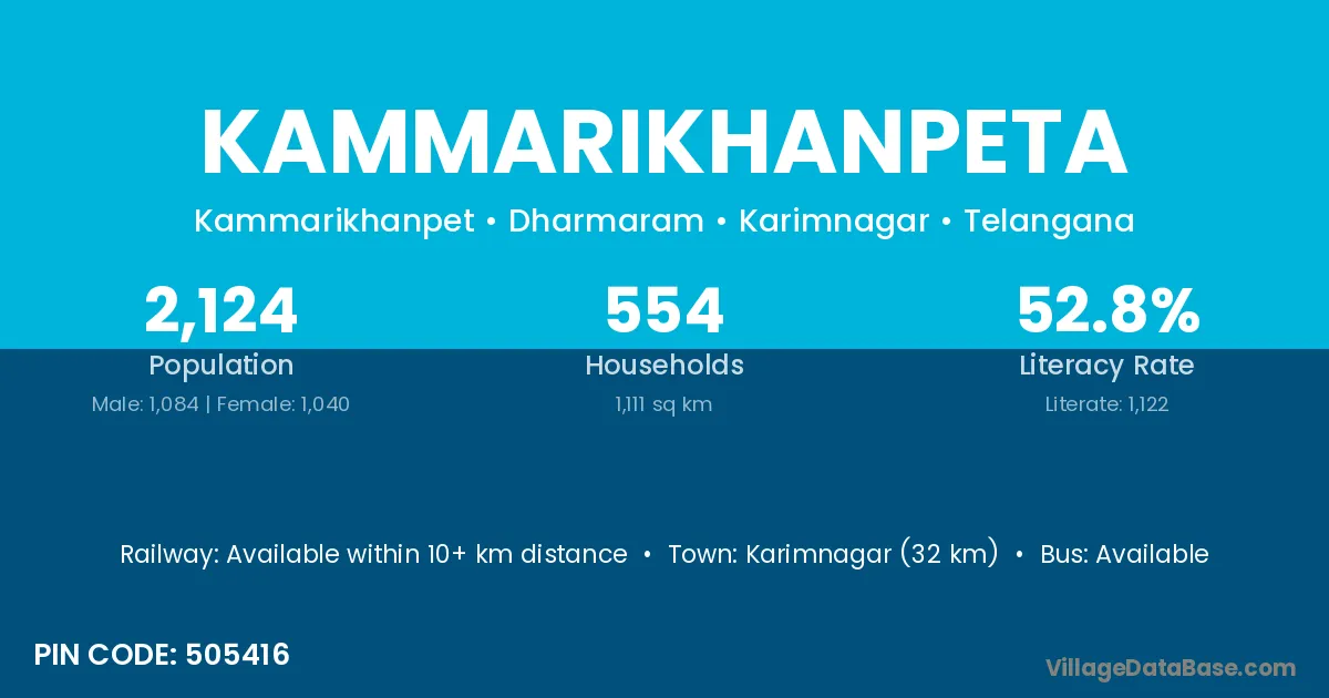 According to Census 2011 information, the village code of Kammarikhanpeta village is 505416.