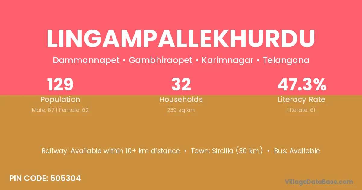 Sircilla (30 km) is the nearest town to Lingampallekhurdu village for major economic activities and is located approximately 30 km away.