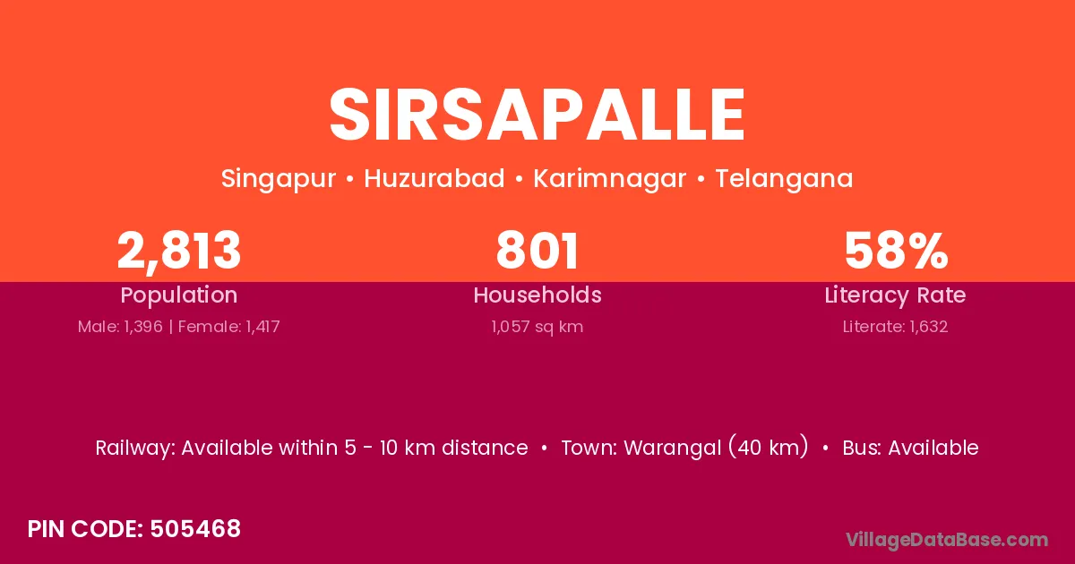 Warangal (40 km) is the nearest town to Sirsapalle village for major economic activities and is located approximately 40 km away.