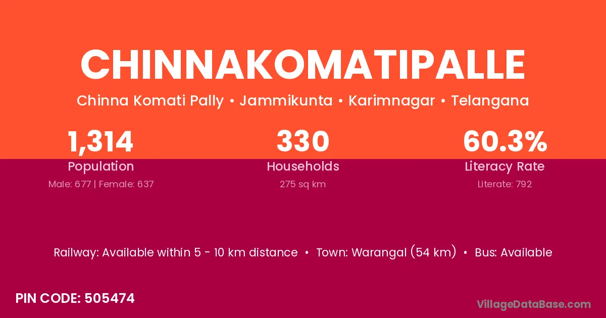 Warangal (54 km) is the nearest town to Chinnakomatipalle village for major economic activities and is located approximately 54 km away.
