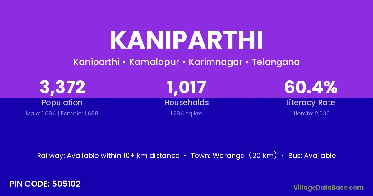 Warangal (20 km) is the nearest town to Kaniparthi village for major economic activities and is located approximately 20 km away.