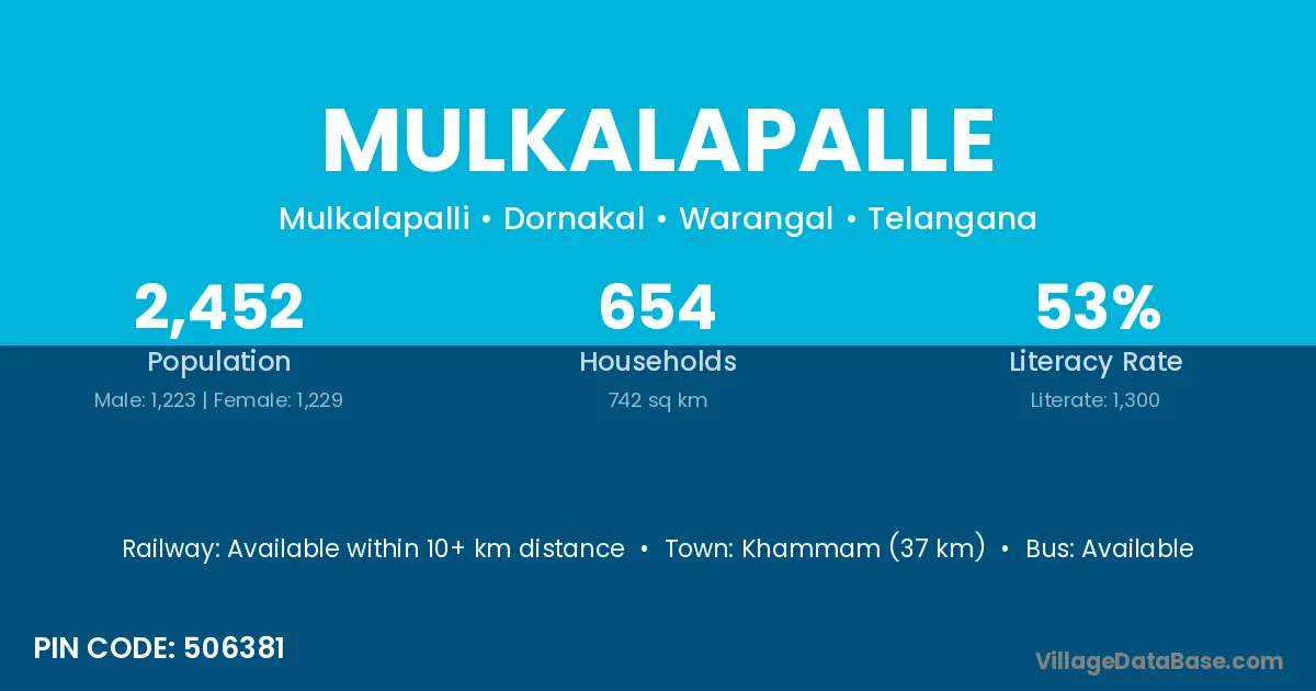 Ramagundam (21 km) is the nearest town to Mulkalapalle village for major economic activities and is located approximately 21 km away.