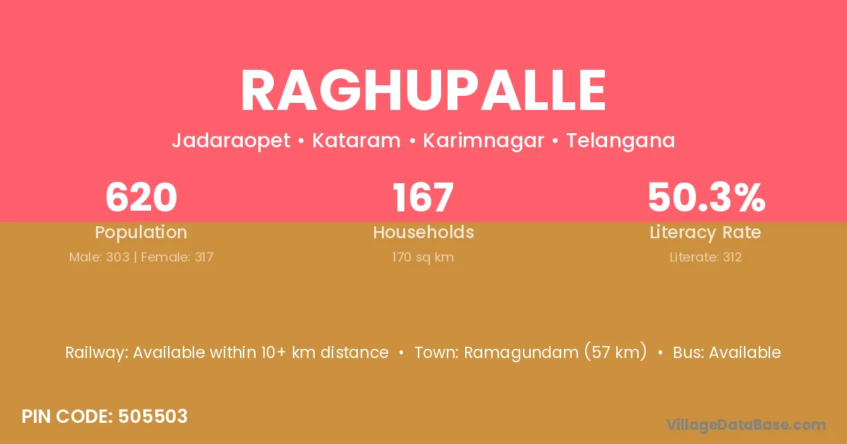 Ramagundam (57 km) is the nearest town to Raghupalle village for major economic activities and is located approximately 57 km away.