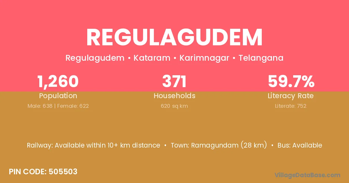 Regulagudem village has a total population of 1,260 people, of which 638 are males and 622 are females.