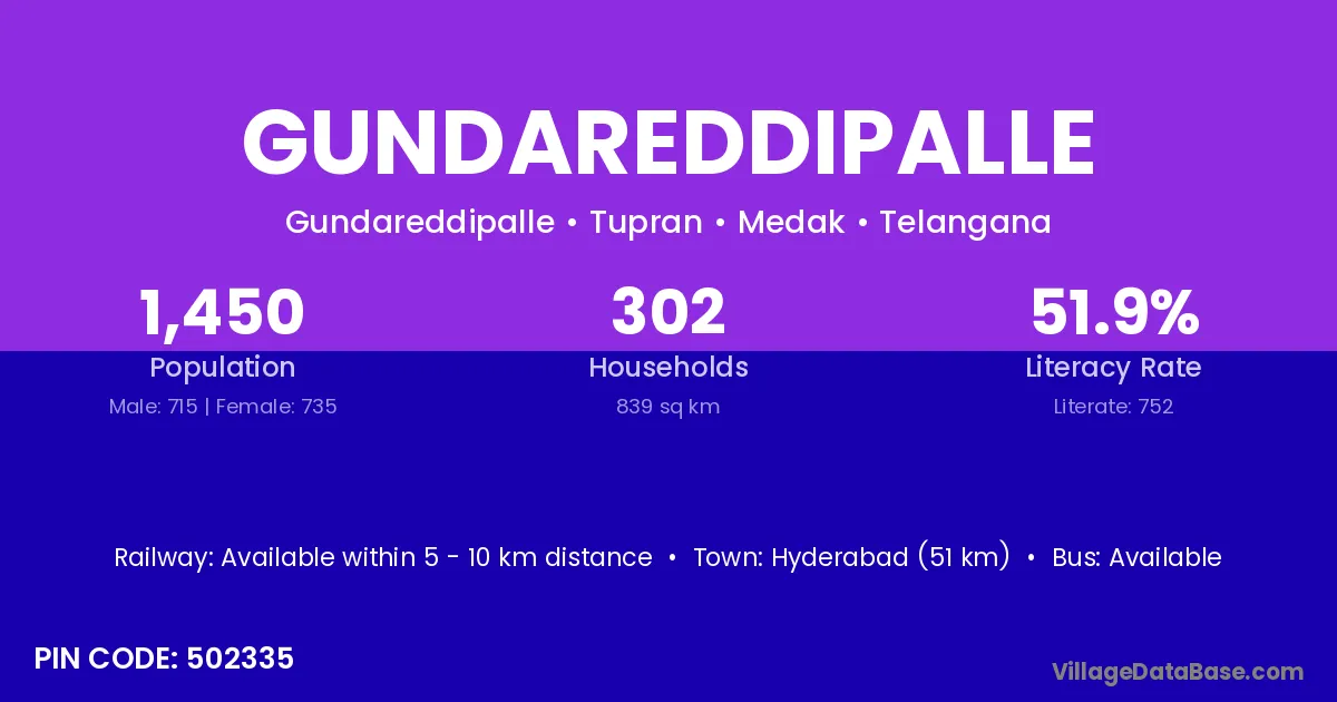 Karimnagar (50 km) is the nearest town to Gundareddipalle village for major economic activities and is located approximately 50 km away.
